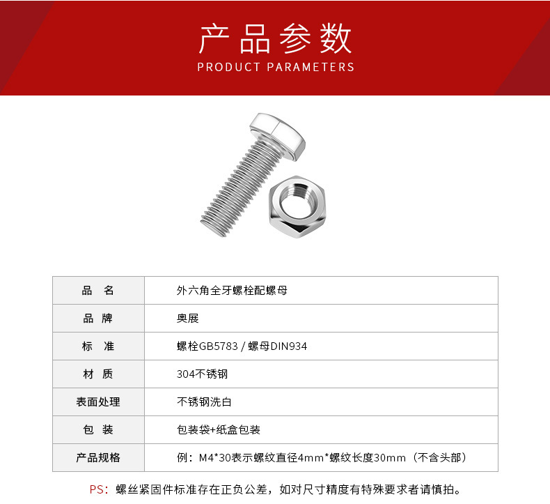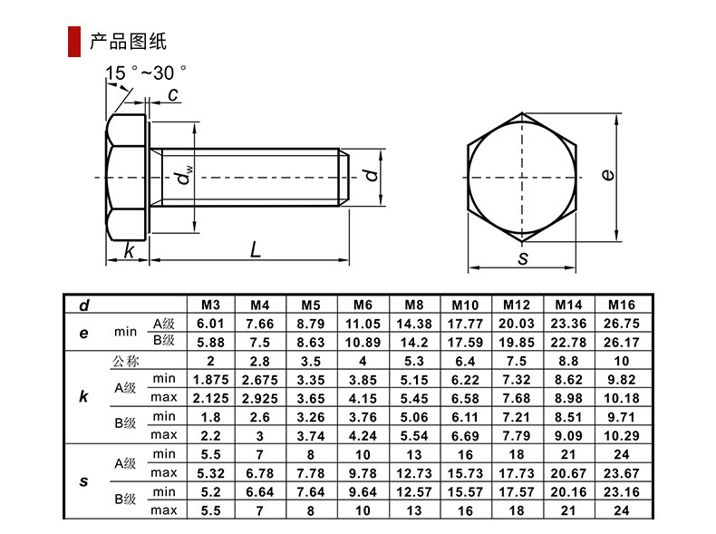 公称直径:M4、M6、M8、M10、M12、M14、M16、M18、M20、M22、M24、M27、M30、M33、M36、M39、M42